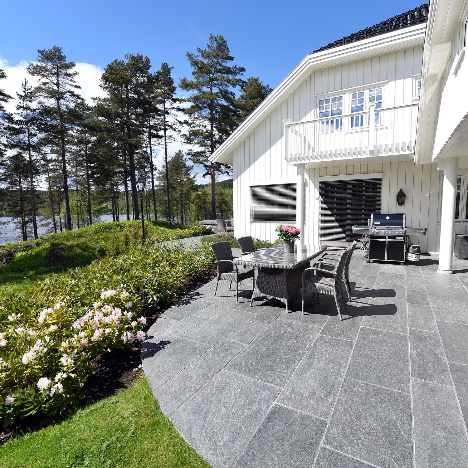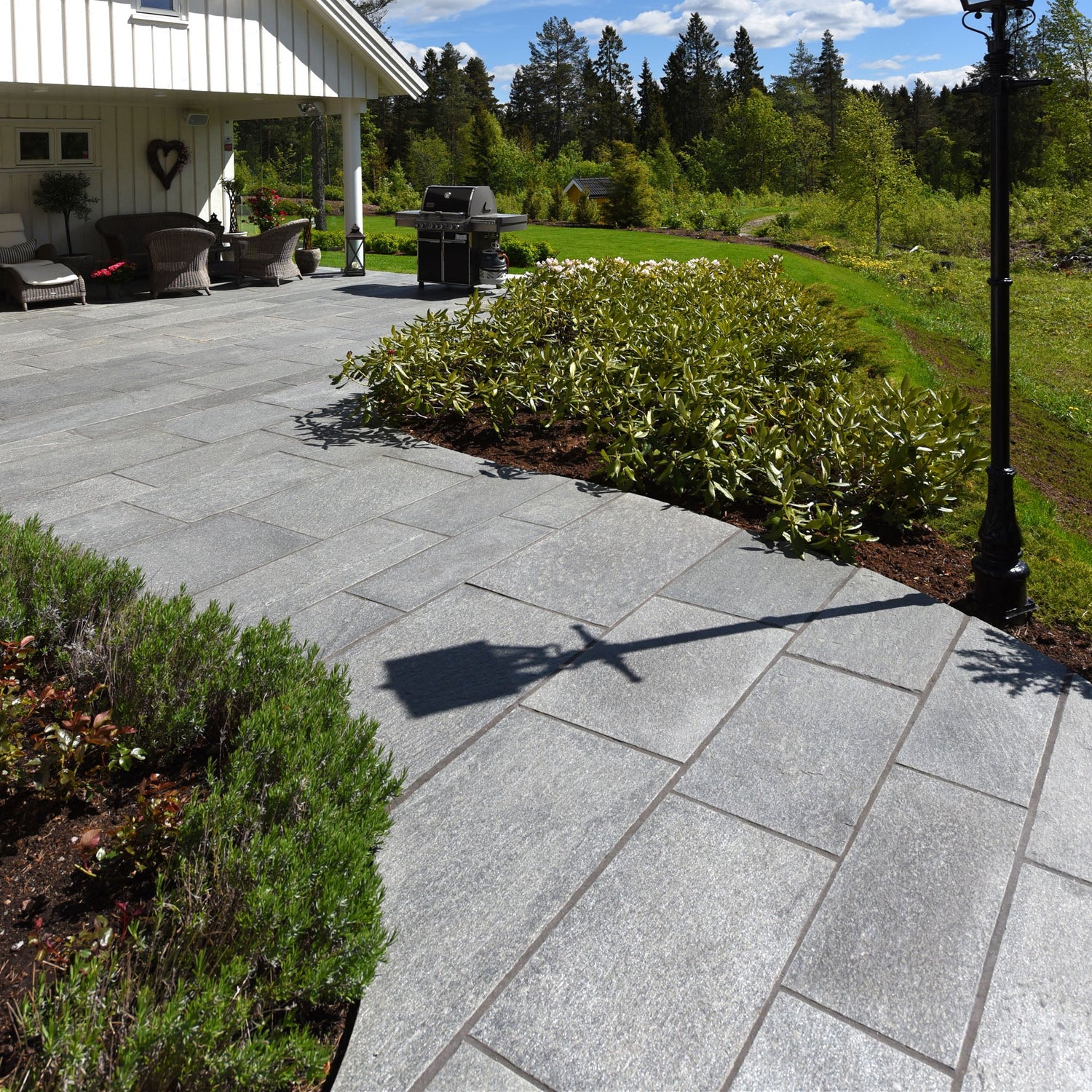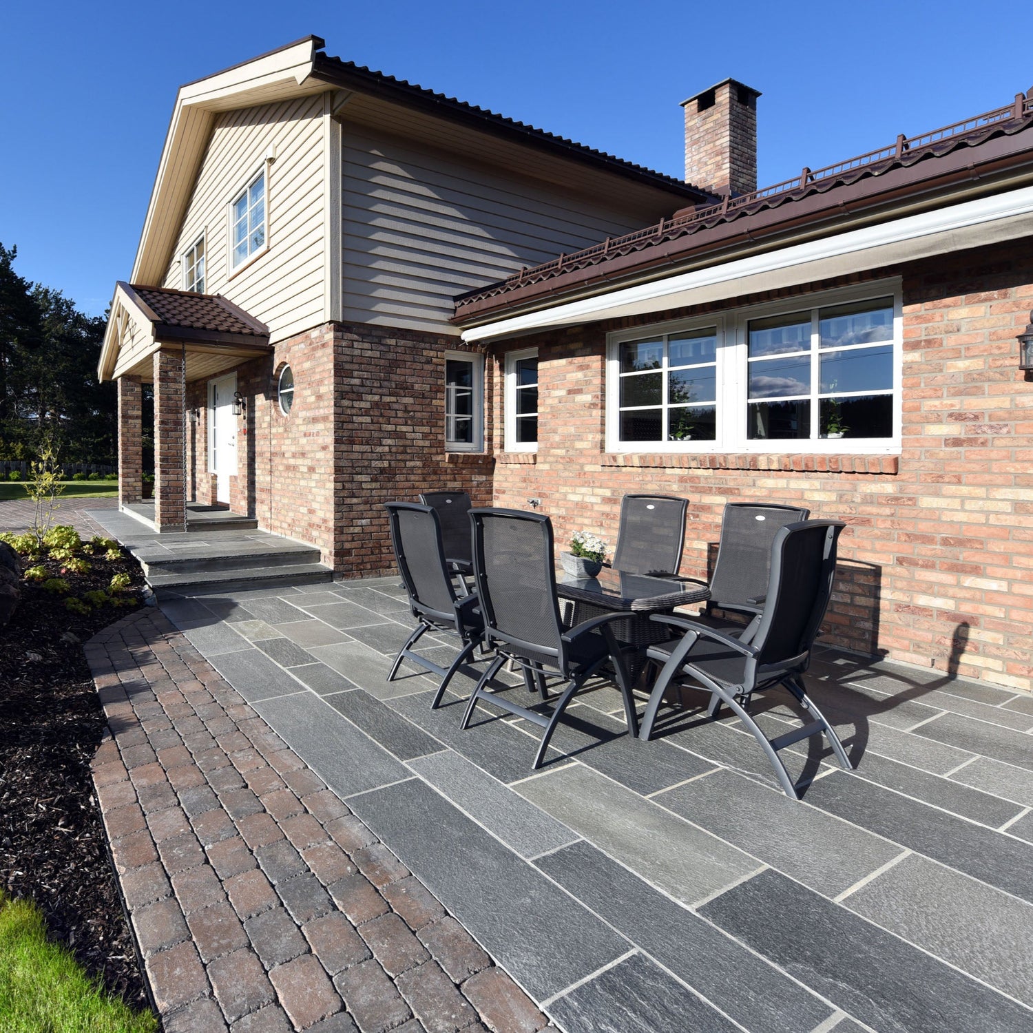 Med sin dype, mørke farge og naturlige tekstur, får du en sofistikert og rustikk sjarm til enhver utendørs plass. Enten det er for en innbydende gårdsplass, en koselig terrasse eller en sjarmerende sti i hagen, vil denne skiferflisen skape et varig og imponerende utseende.