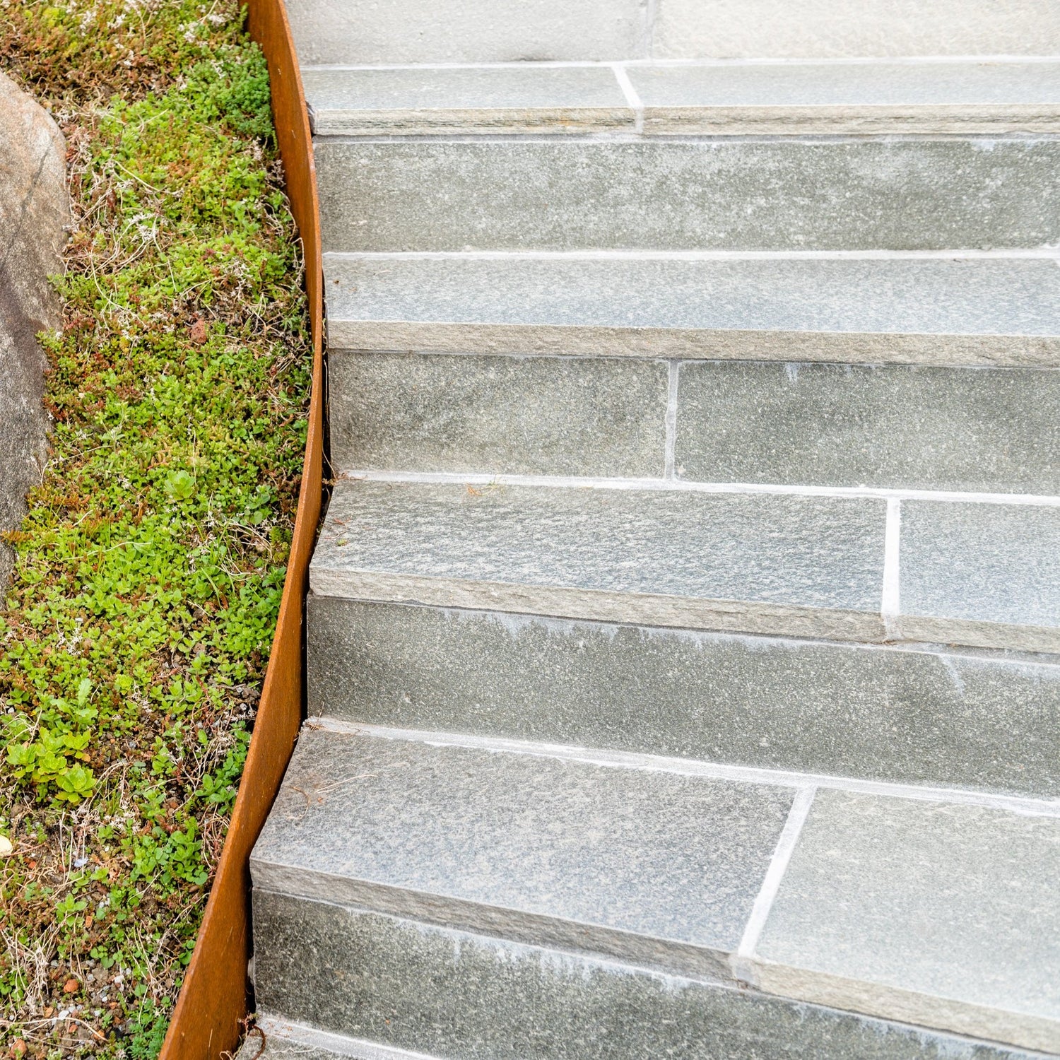 Gjør skifertrappen komplett med opptrinn i nydelig Lys Oppdalskifer. Opptrinnene har sagde kanter og justert tykkelse på 12mm.