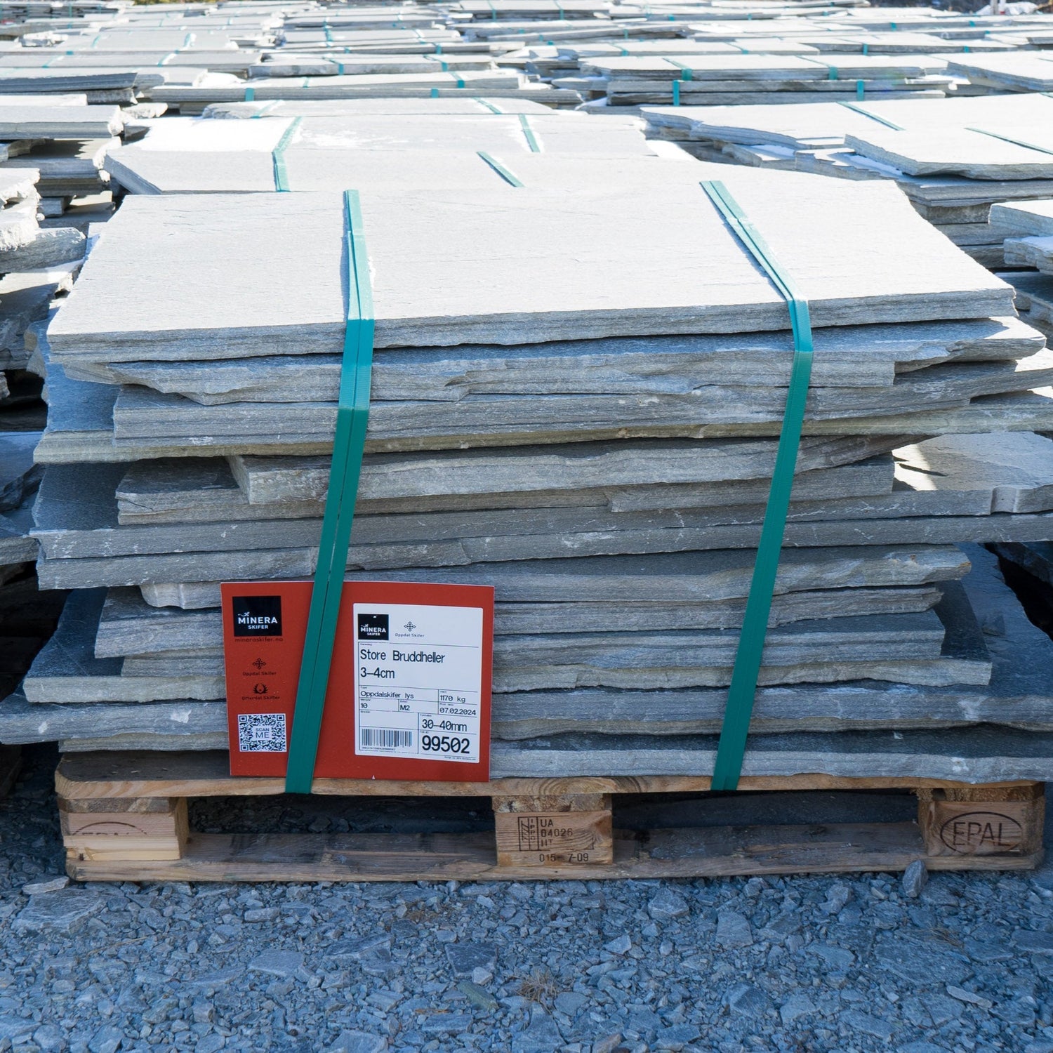 Bruddskifer, skiferheller eller bruddheller. Skap det klassiske uttrykket på din uteplass med bruddskifer fra Minera Skifer. Skap soner i hagen, lune spiseplasser, utekjøkken eller andre prosjekter hvor bare fantasien setter grenser. Med bruddheller i lys oppdalskifer får du et tidløst og evigvarende underlag som varer i generasjoner. Bruddskifer kan også enkelt flyttes og gjenbrukes til prosjekter senere.
